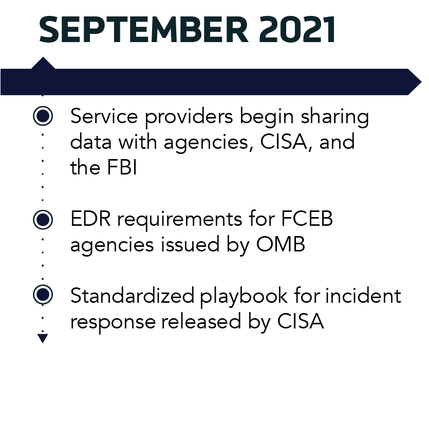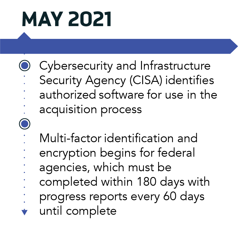 Shayla: The EO’s accelerated timeline reflects the importance and necessity of these new cybersecurity measures. Federal organizations will need to quickly assess the state of their cyber postures and modernize many of their legacy systems within the first six months of the EO signing. Guidelines for commercial enterprises will quickly follow, taking effect within the year. The EO’s rapid timeline and technical challenges mean federal and commercial enterprises will need to rely heavily on their contractors and partners to enact the required security solutions.