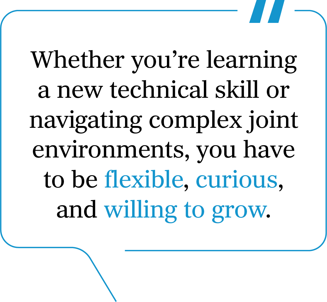 If there’s one lesson that’s stuck with me, it’s the importance of adaptability. Whether you’re learning a new technical skill or navigating complex joint environments, you have to be flexible, curious, and willing to grow. That mindset continued to help me long after I left active-duty service.